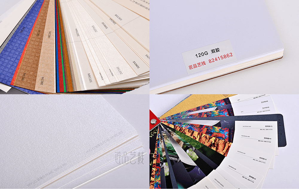 一为按“系列”?。?/span>即根据画册设计方案选择纸张。如对产品颜色还原度要求较高,通常建议采用双铜纸、哑粉纸、涂布纸等;如对画册艺术性要强的,通常建议采用艺术纸、花纹纸等;而如对质感要求较强,也可选用珠光系列纸张。