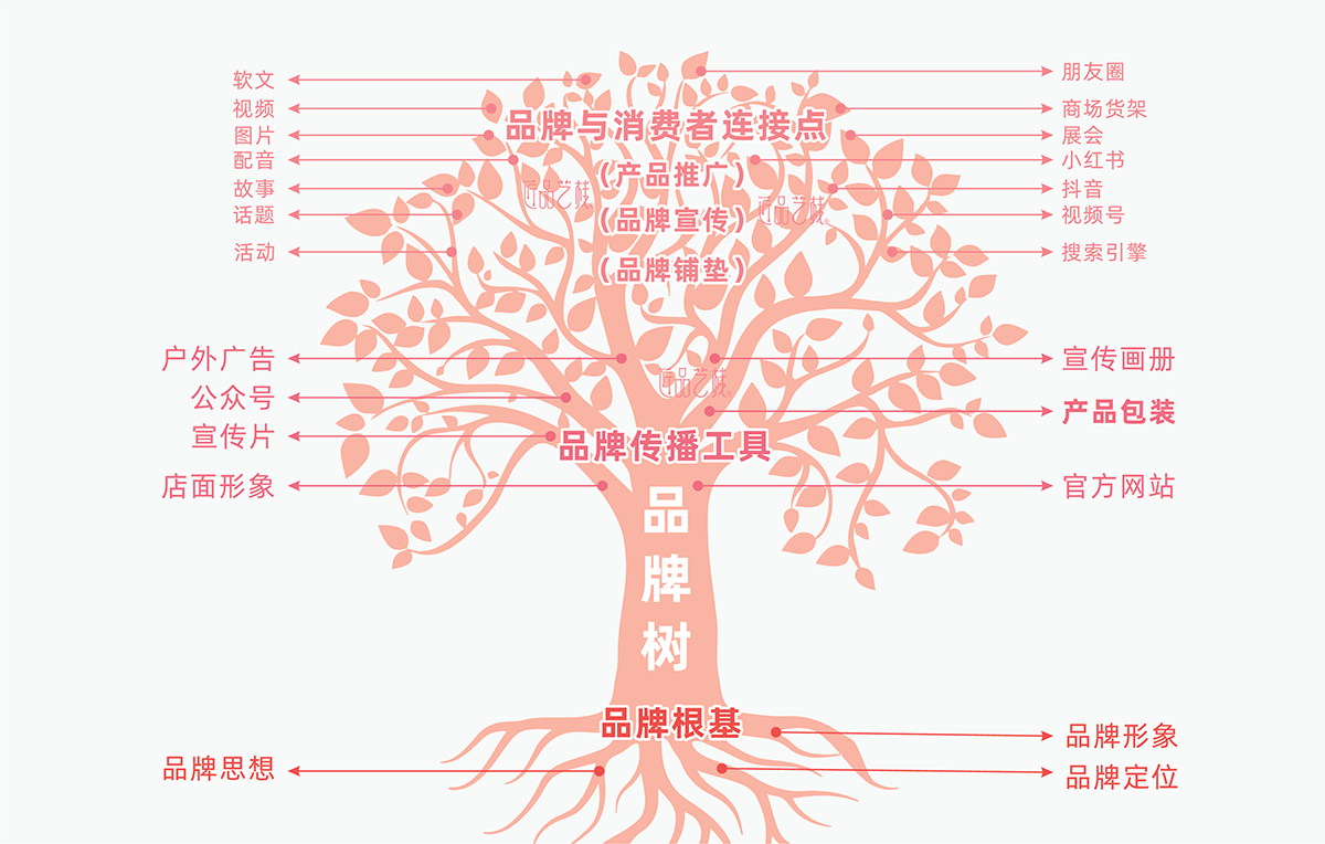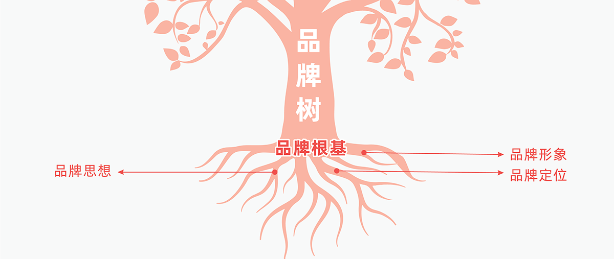 品牌树的根基,主要包含“品牌定位”、“品牌思想”、“品牌形象”三大方面。