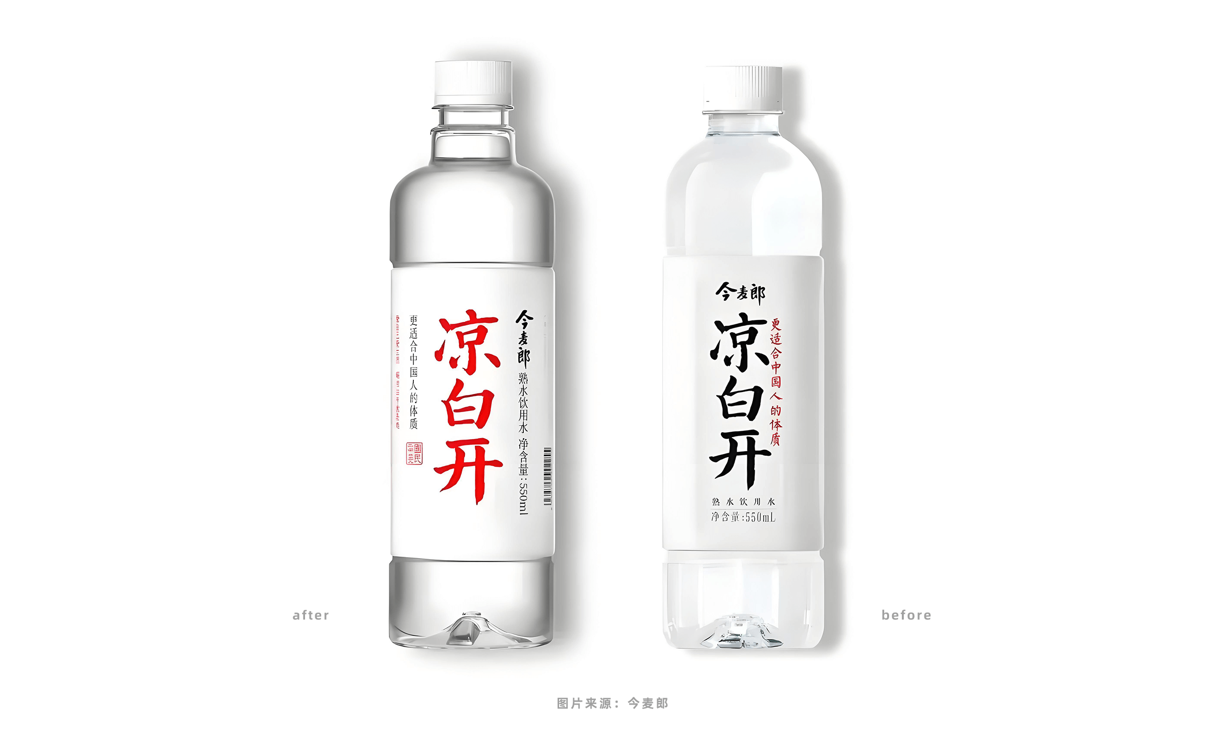 如:今麦郎凉白开的包装升级。
