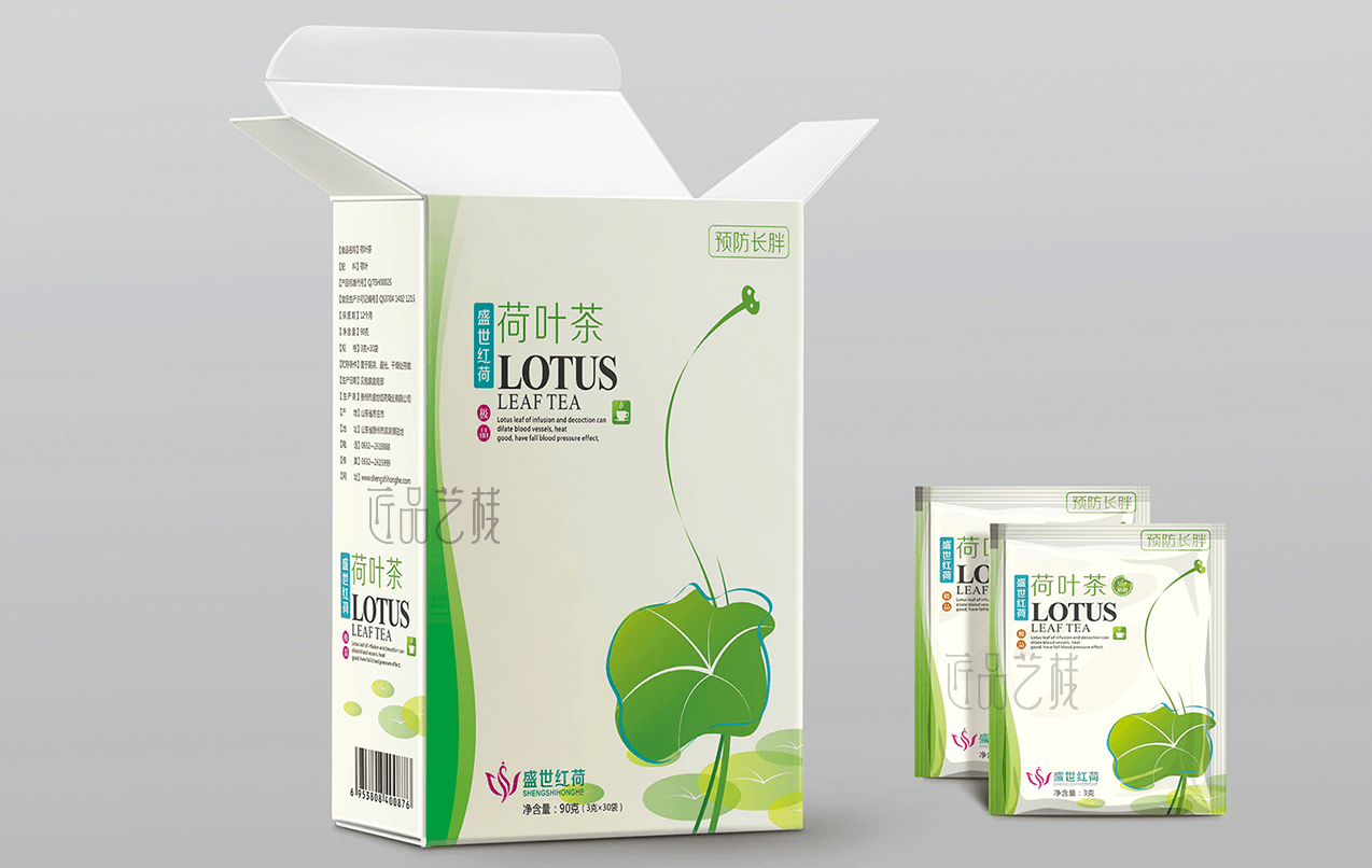 盛世红荷荷叶茶,依附微山湖湿地纯天然生长荷藕背景优势,通过多年的研发技术、引进生产设备,打造最优质的荷叶茶知名品牌。在该荷叶茶产品包装设计定制中,我们采用荷叶与女人塑身美的元素组合创意设计为核心元素,并针对不同销售渠道和人群定位,打造快消产品包装盒和高档礼盒包装套装,形成统一的品牌识别形象,易于品牌价值积累,同时提升产品的售价和销量。