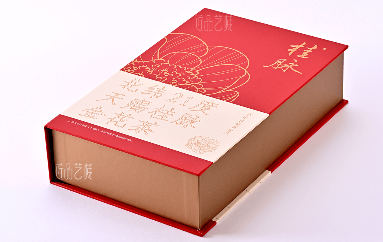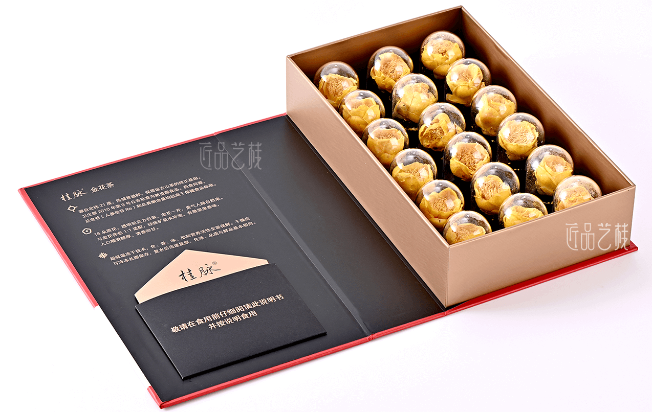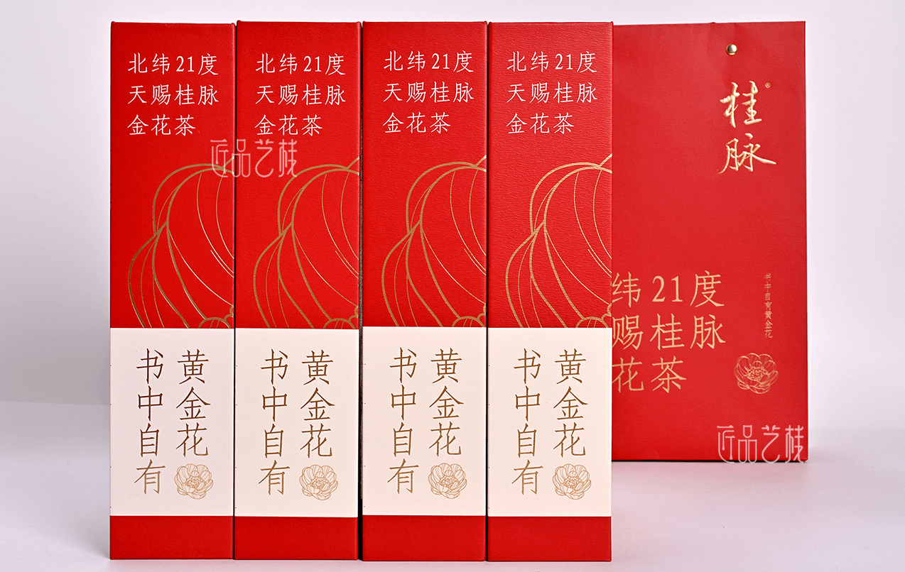 桂脉金花茶,广西金花茶领导品牌。金花茶是上古时代遗留下来的原始山茶遗珍,在桂脉品牌金花茶设计定制中,佳润隆包装&匠品艺栈采用传统书籍的创意形式,结合现代的印刷工艺和简约风格,搭配质感纸质和内托精制而成;使整理礼盒呈现出中国韵味文化,同时又不失送礼时的低调轻奢品质,打开包装,金花灿灿,寓意贵气人脉来,送礼倍有面。