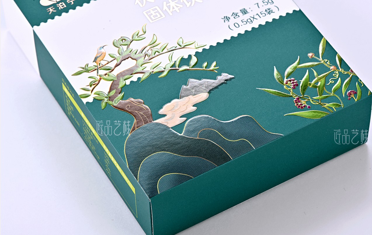 本产品包装盒是由佳润隆包装印刷&匠品艺栈团队为大健康领域优秀企业,绘云生物科技提供的原创设计和印刷制作包装,采用国潮风插画原创绘制设计,搭配进口白卡和直角、uv印刷等工艺进行制作,深受客户与相应市场的一致好评。
