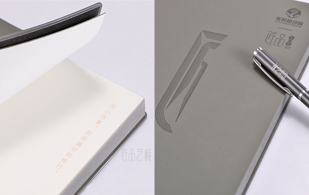 匠品艺栈文创笔记本,是由佳润隆包装印刷公司自主设计、印刷、装订定制的简约创意笔记本,精选高端皮质、笔记本专用纸张,并搭配银边滚烫的工艺精制而成,配置礼盒套装,以此起到礼品和宣传的双重作用,同时更进一步沉淀公司为客户提供文创笔记本生产定制的经验和能力。