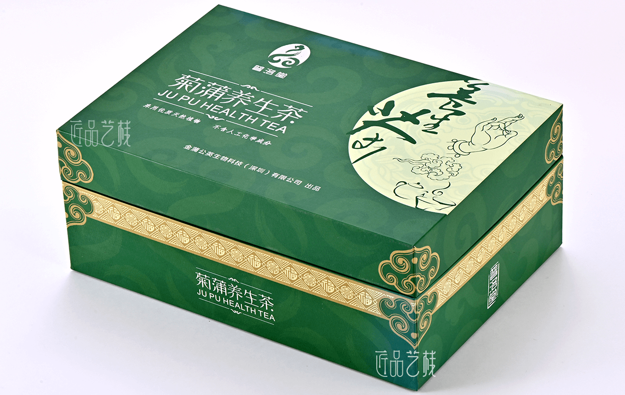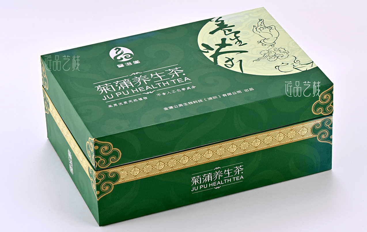 金蒲公英生物科技(深圳)有限公司是一家专注于保健食品、休闲食品、生物制品、原生中草药、生物技术等领域的保健创新型企业,在与其普洛堂品牌保健养生茶包装盒印刷定制中,采用绿色调特种纸和特种制纹工艺,配置a级精装礼盒,大力提升相应产品的溢价能力和市场价值。