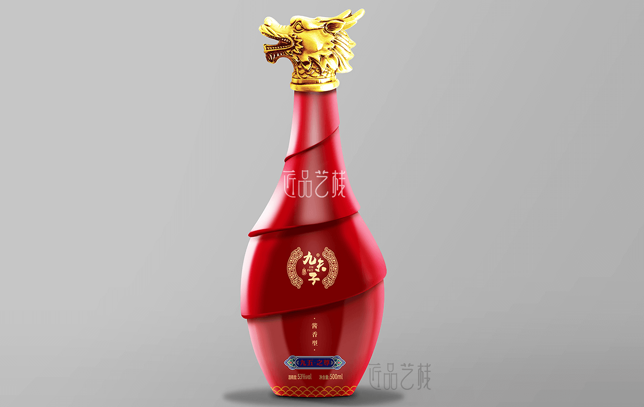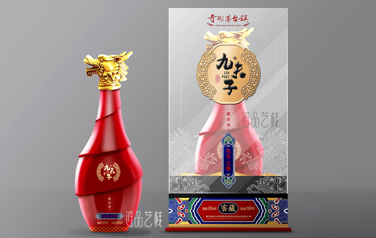 九夫子酒品牌,选用茅台镇本地优质糯高粱和小麦,取水于赤水河水,具有酱香突出、优雅细腻、空杯留香持久等独特风格。在九夫子酒品牌产品包装设计定做中,采用一言九鼎、凤舞九天、九五之尊系列分类,设计统一的品牌图标,并根据每个系列的特点和定价,设计不同包装形态、元素和色彩的包装盒和酒店,让其得到统一的品牌形象传播和溢价的同时,又节省对应的生产成本。